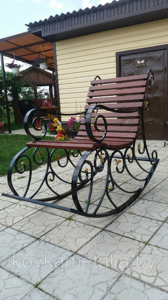 Стильное кованое кресло-качалка выдерживает нагрузку до 200 кг. Изготовление под заказ из высококачественной стали, большой выбор, доставка по всей РБ, розница, опт.